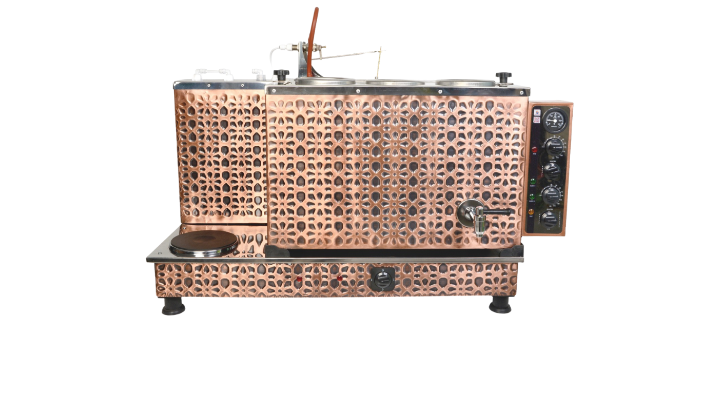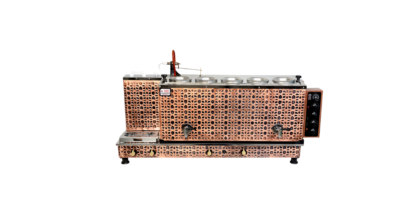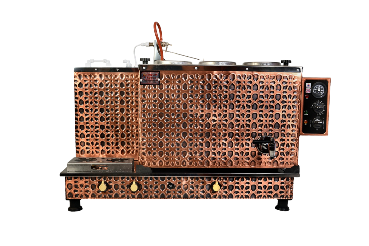 Geleneksel ve otantik tasarımıyla dikkat çeken bakır çay kazanları, işletmenizin atmosferine sıcak bir hava katar. Kaliteli bakır malzemesi sayesinde dayanıklı ve uzun ömürlüdür. 3’lü, 4’lü ve 5’li modelleriyle hem küçük hem de büyük işletmelere hitap eder. Isıyı hızlı ve eşit dağıtan yapısıyla enerji tasarrufu sağlar. Geleneksel estetiği ve modern teknolojiyi bir arada sunar.